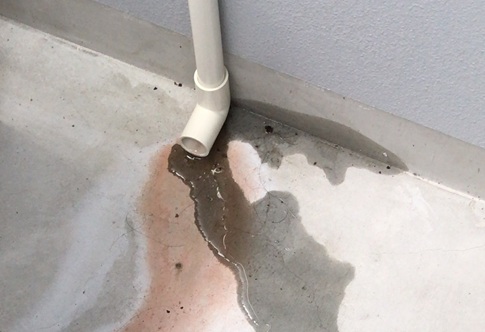ドレンホースからドレン水を排出するには自然勾配が必要ですので、勾配を取れない場所に置くとドレン水がドレンホース内で滞留してしまいます。ドレン水が長期間滞留しているとゴミが詰まったりして、どんどんドレン水が逆流して最終的には水漏れを発生します。