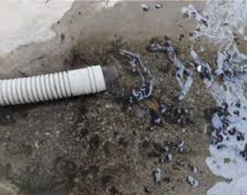・ドレンホースの上部から高圧洗浄機で水を流す。