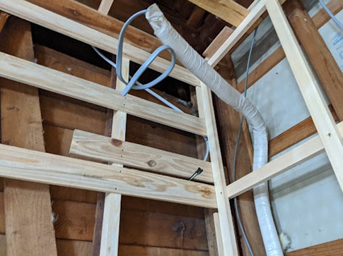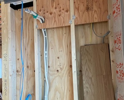 既存の隠蔽配管を壁の中から取り出す際に、壁の中にある筋交いや間柱や壁の内側を傷つけないように慎重に作業を行わなければいけないので非常に難易度が高い作業です。さらに、間柱には電気配線を固定していることもありますので、電気配線をうまく避けながら隠蔽配管を取り除く必要があります。